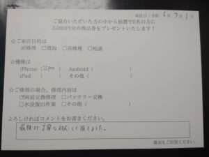 【お客様の声】iPhone 11Proの画面交換を行いました!