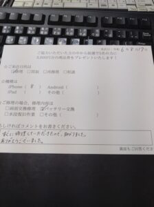 【お客様の声】iPhone8のバッテリー交換をしました!