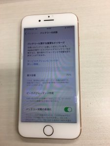 iPhoneのバッテリーの最大容量を確認すると75%になっていました。