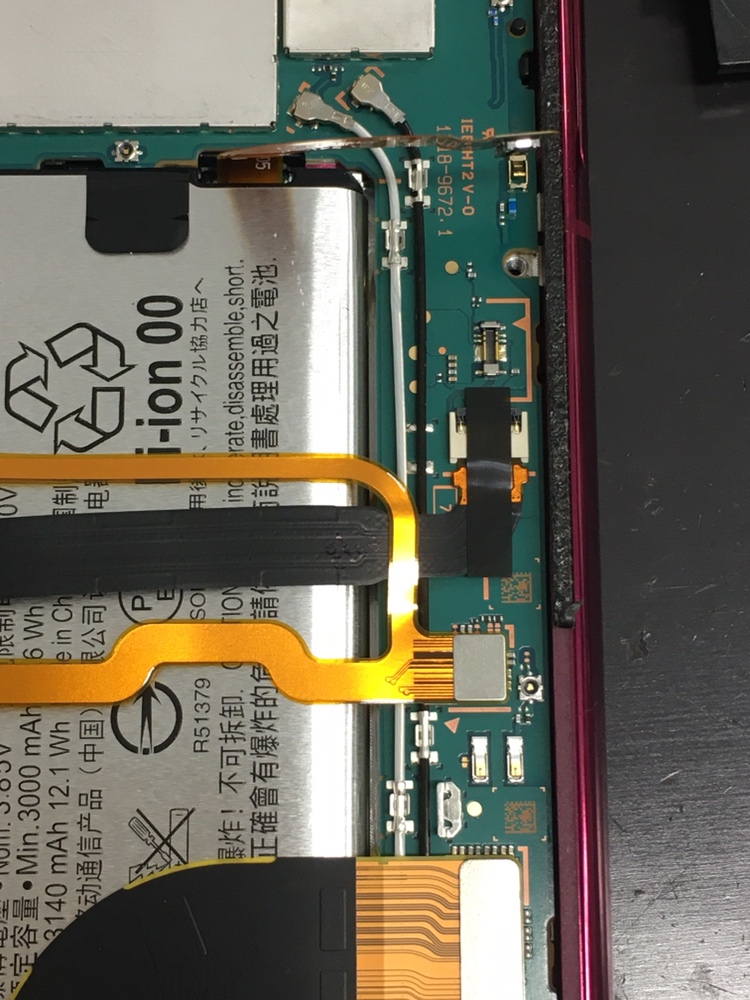 後は電源ボタンの配線などを取り外し、基板部分を取り外しバッテリーを交換すれば、修理完了になります。