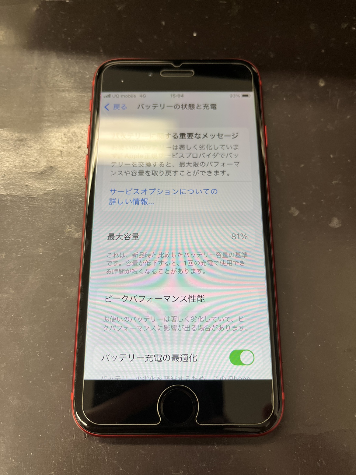 バッテリー交換後のiPhone8