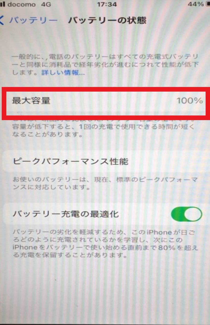 このように、バッテリーの最大容量が低いですね。