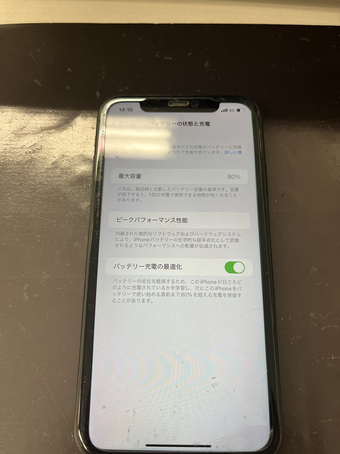 このように、バッテリーの最大容量が80%に