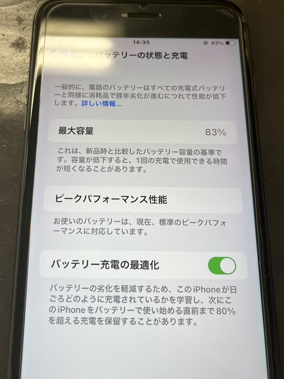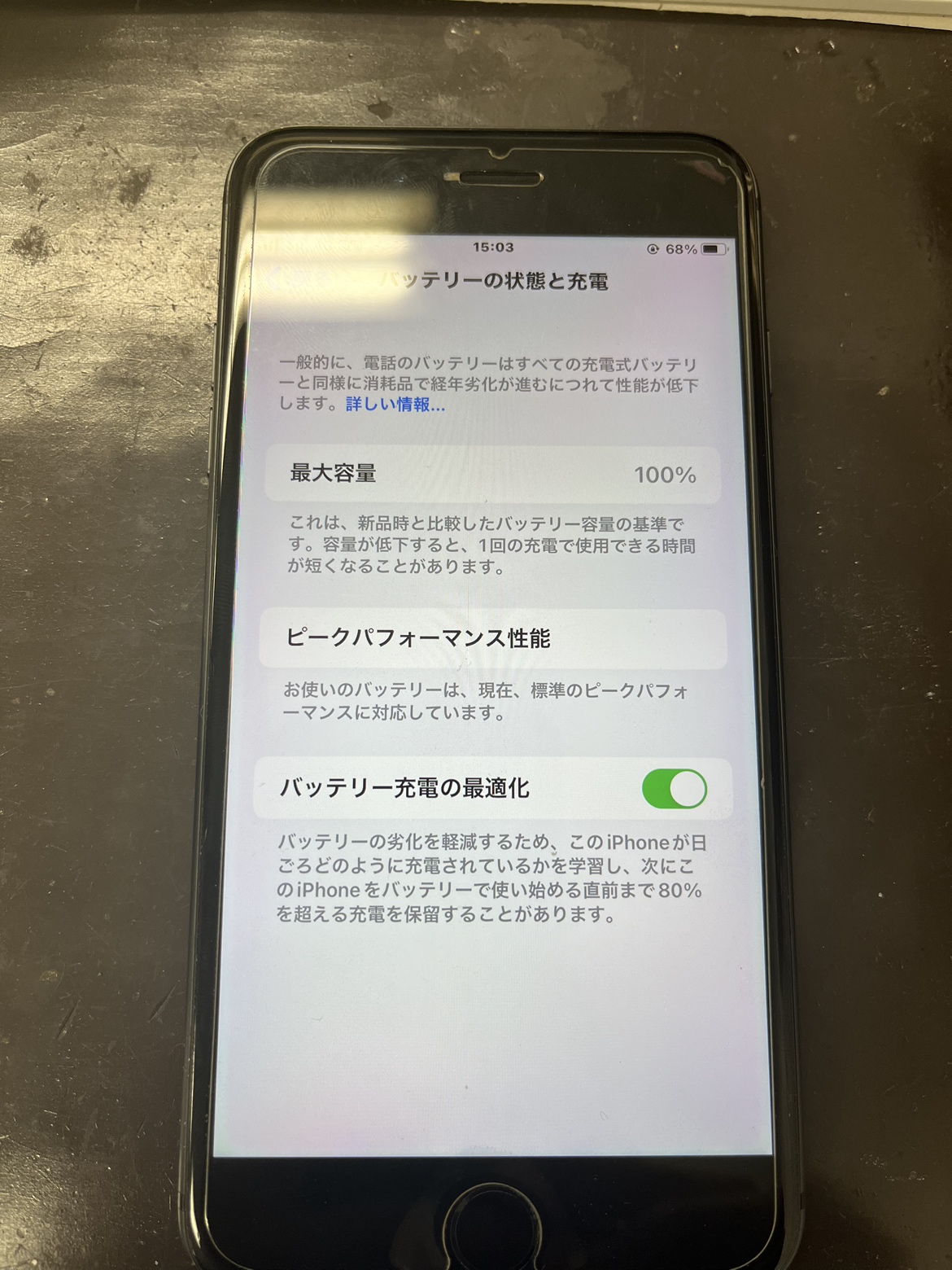 修理後のiPhone8のバッテリー最大容量