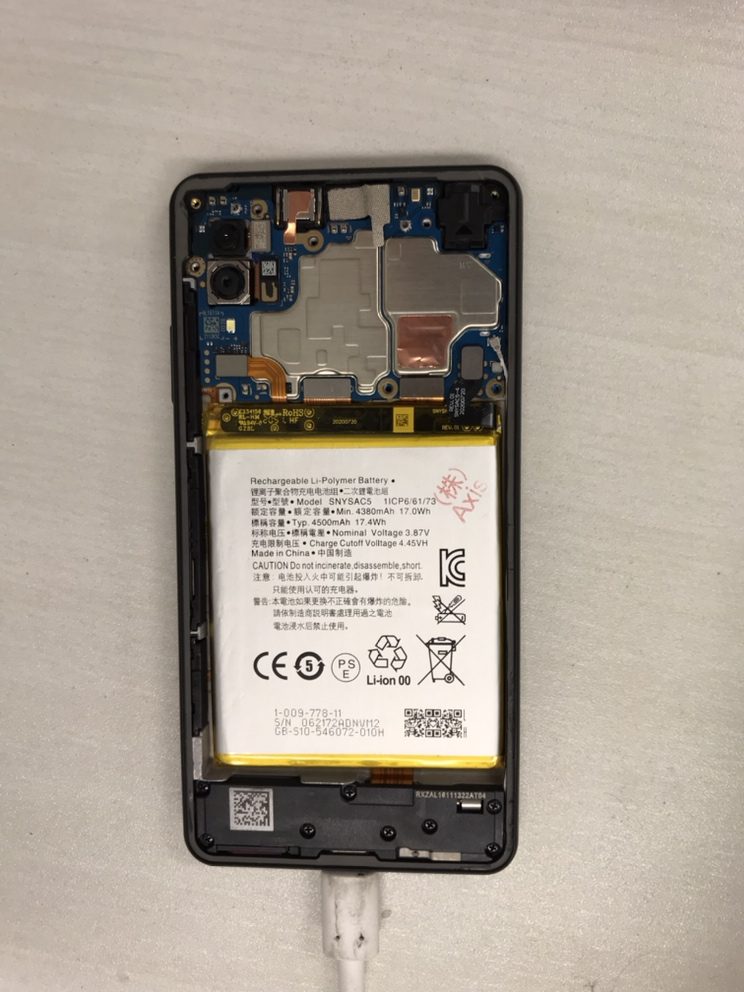 新しいバッテリーに交換中のXperiaAceⅡになります。
