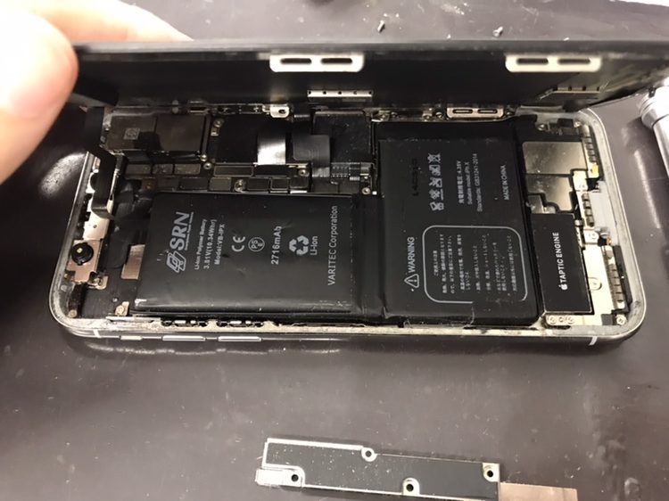 【画面パネルを取り外したiPhoneX】