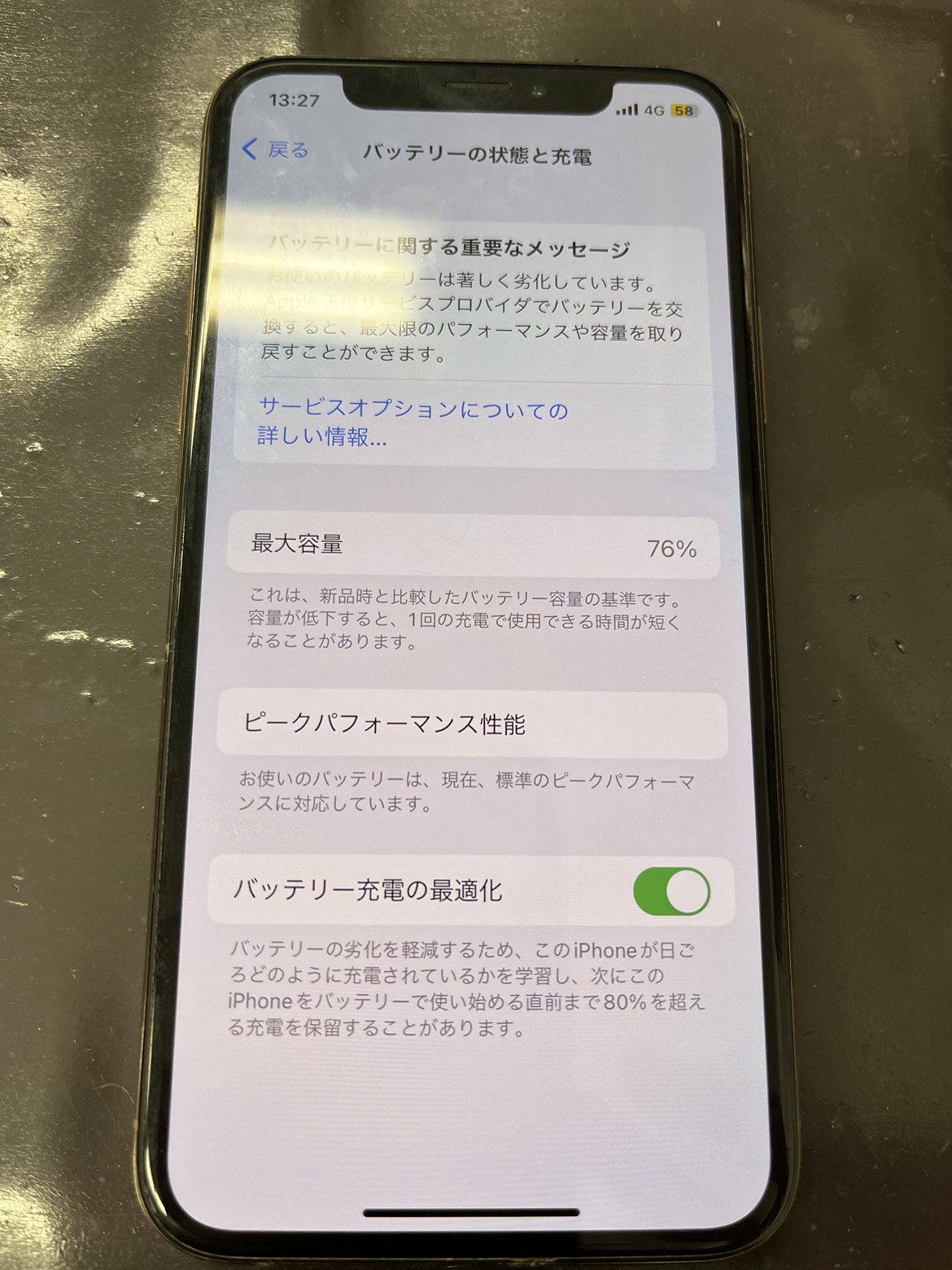修理前のiPhoneXsのバッテリー最大容量