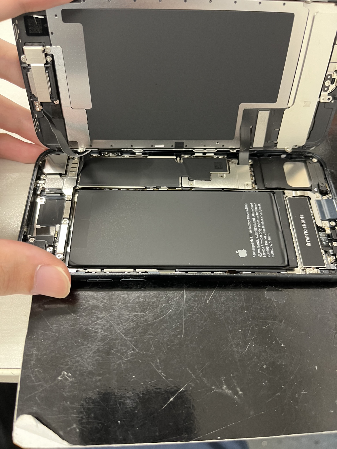 修理中のiPhoneSE3