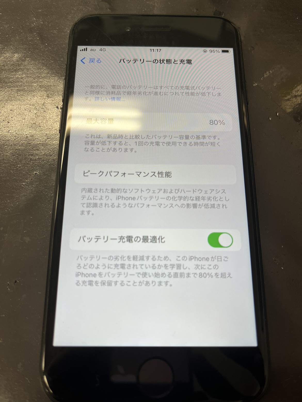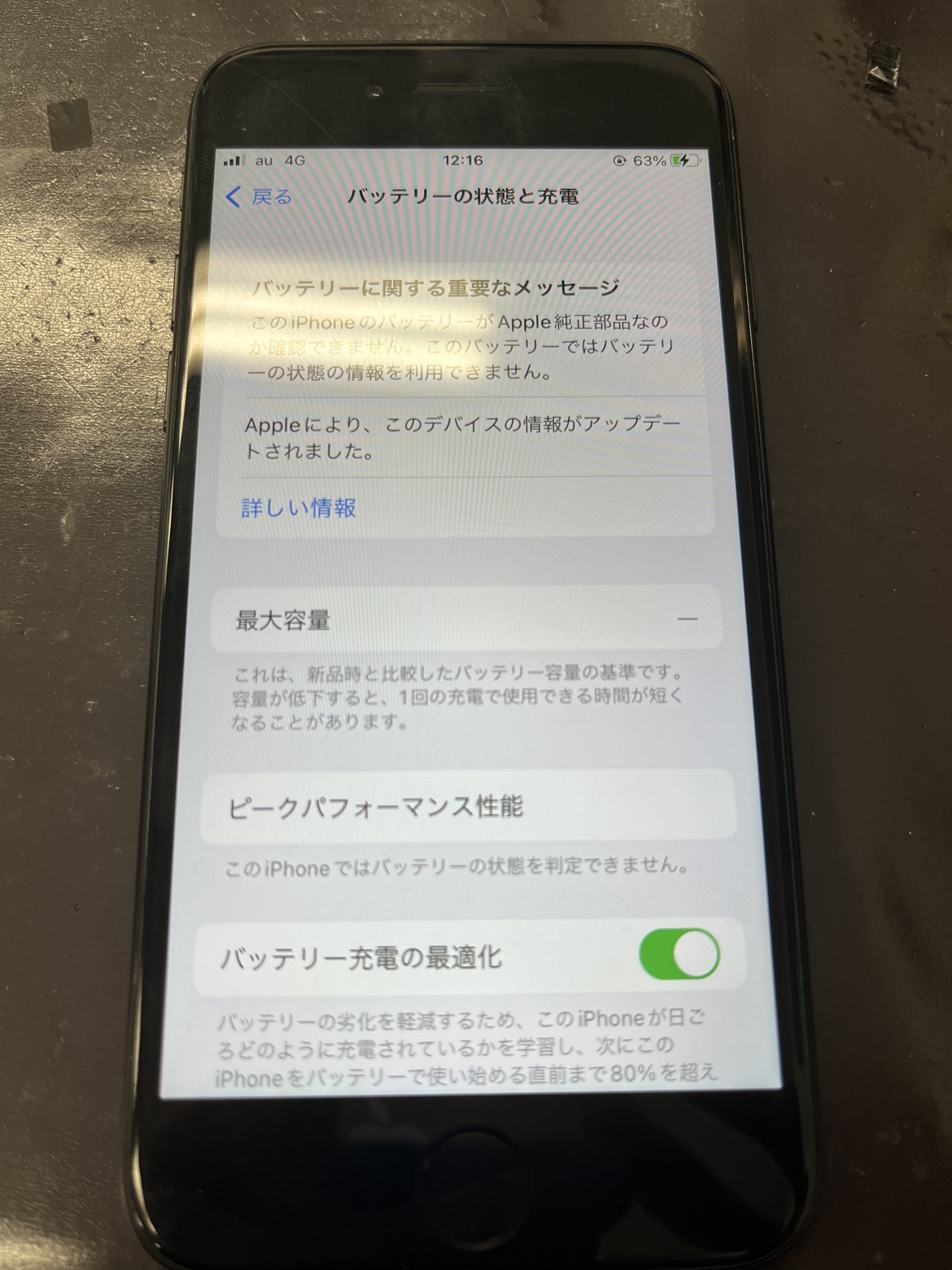 修理後のiPhoneSE2の状態