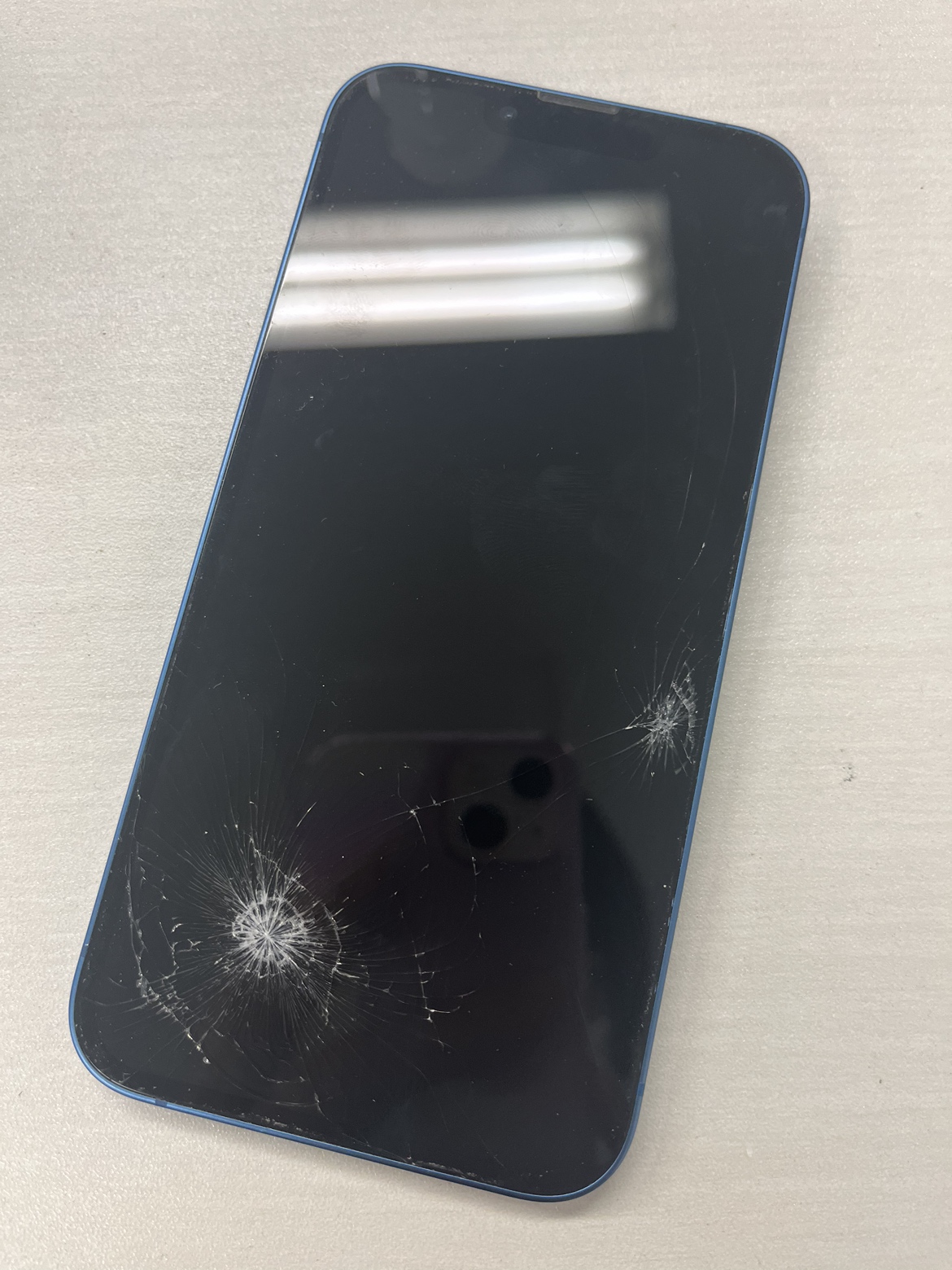 このように、画面下部が蜘蛛の巣状のような形で割れていますね。