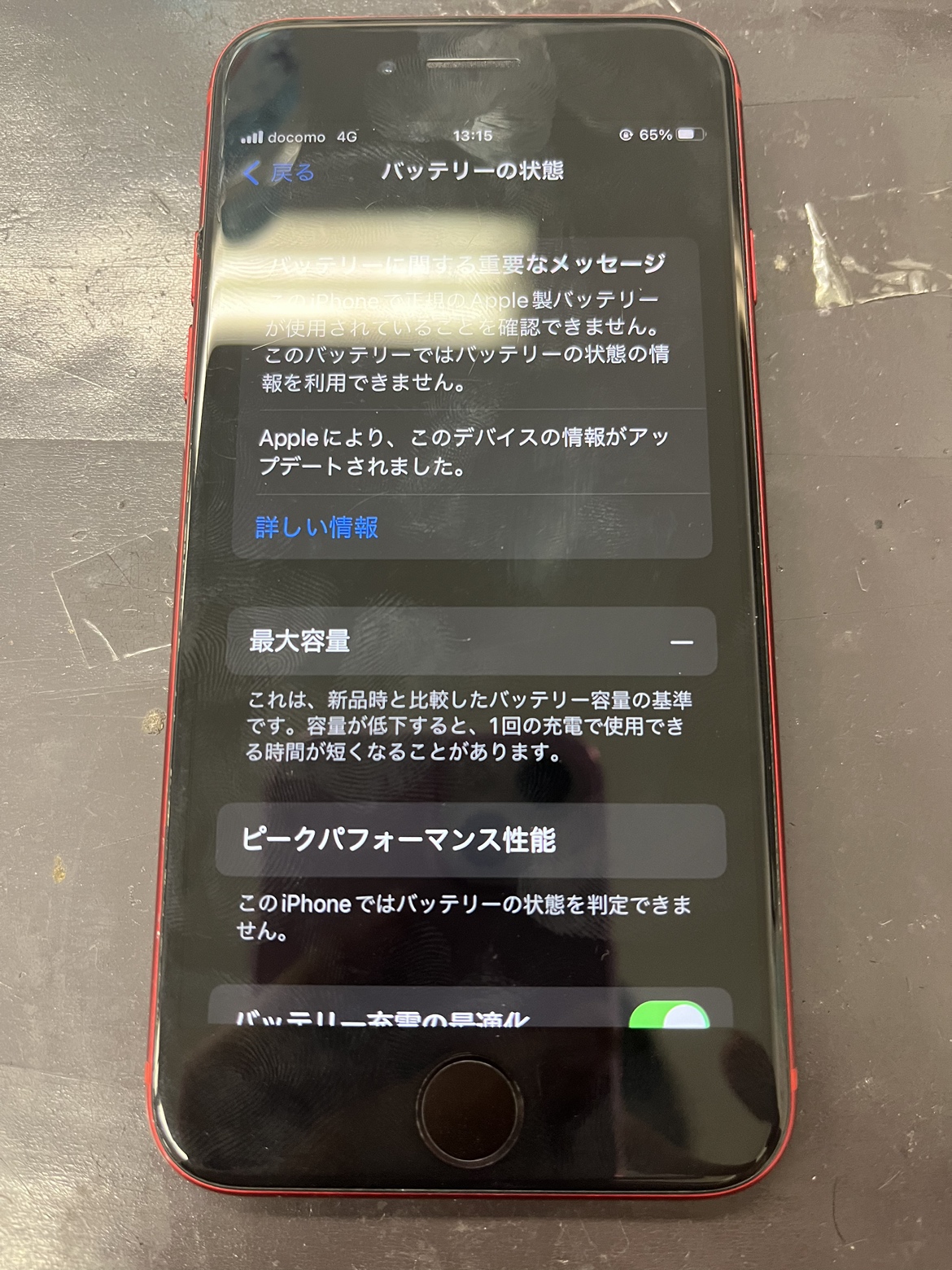 修理後のiPhoneSE(第2世代)の状態