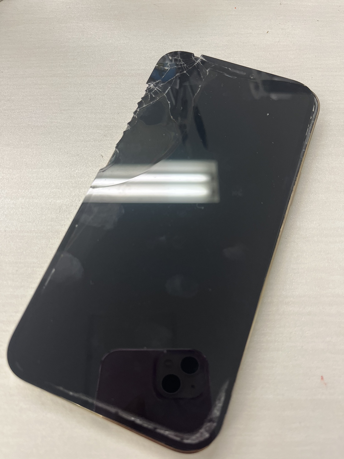 このように、画面下部が蜘蛛の巣状のような形で割れていますね。