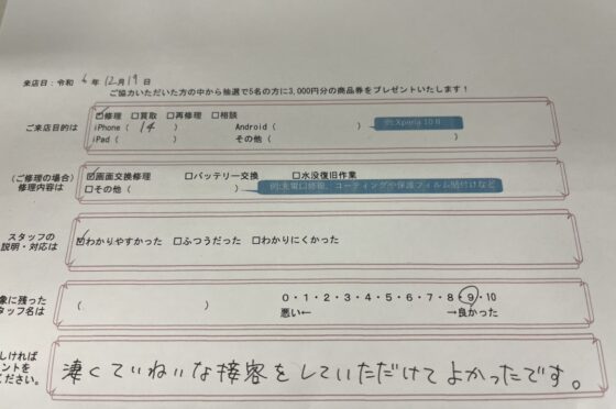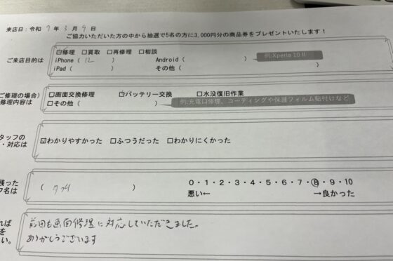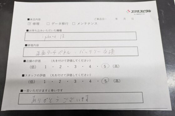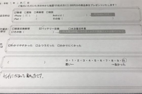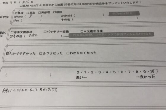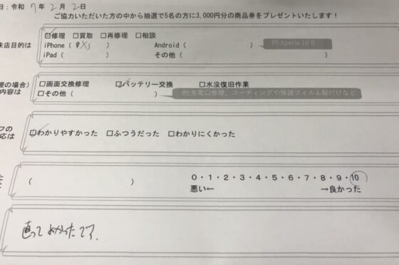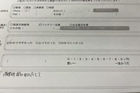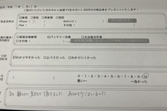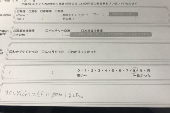 弊社の修理サービスをご利用いただいきましたお客様の声です。