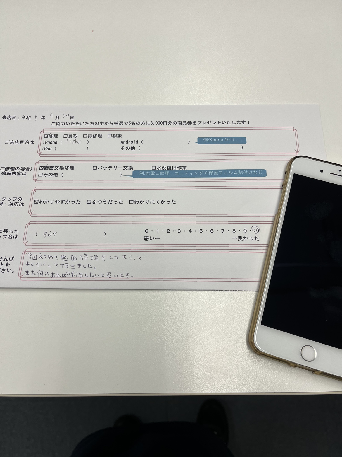 今回、初めて画面修理をしてもらってキレイにして頂きました。 また何かあれば利用したいと思います。