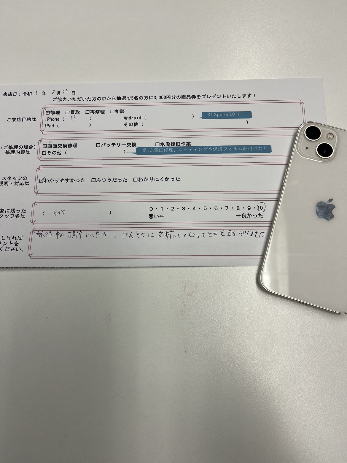 旅行中の故障でしたが、迅速に対応してもらってとても助かりました。