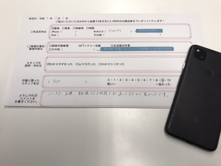 スマホスピタル京都駅前 Google Pixel4aのバッテリー交換!
