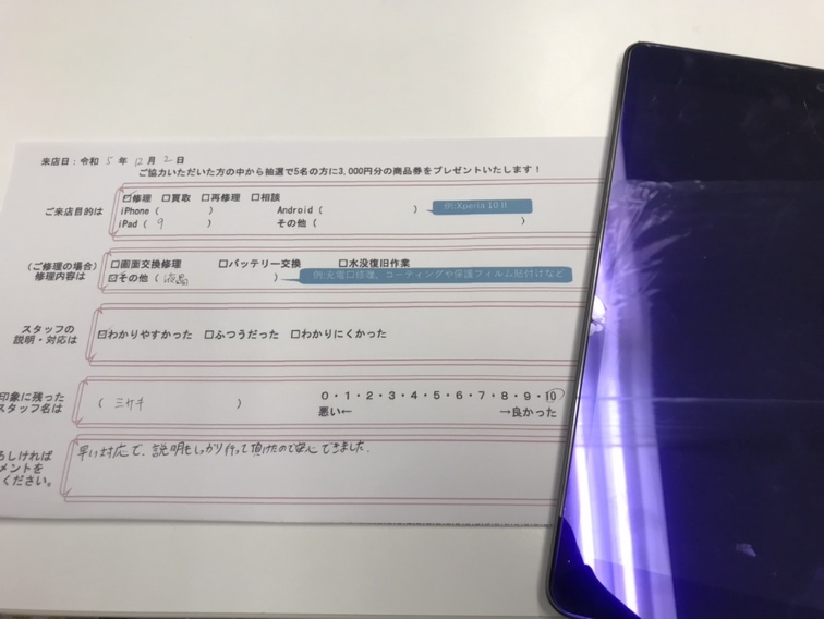 スマホスピタル京都駅前 iPad(第9世代)の液晶交換修理!