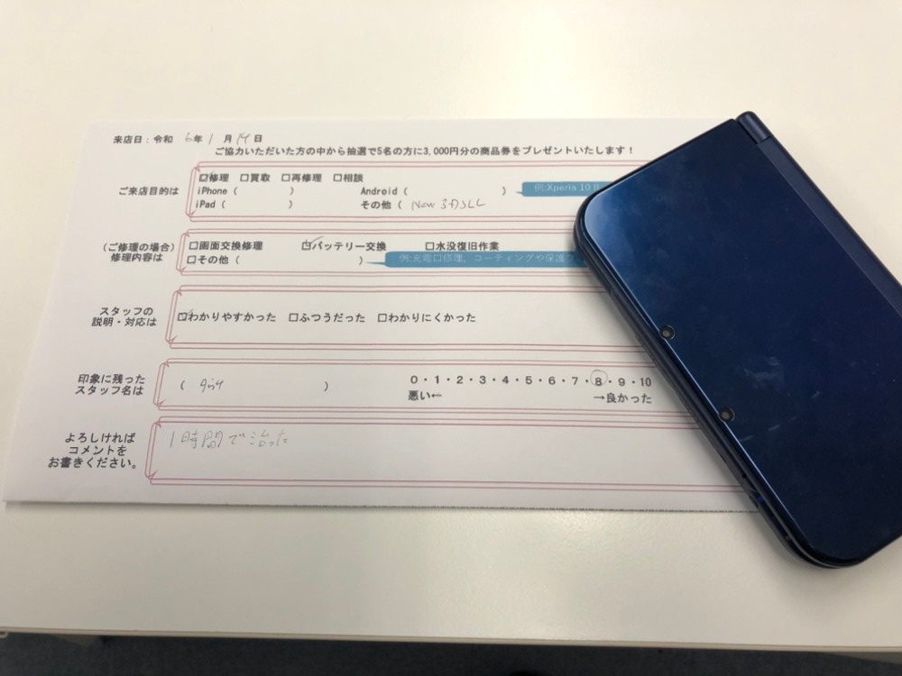 スマホスピタル京都駅前 New3DSLLのバッテリー交換修理!