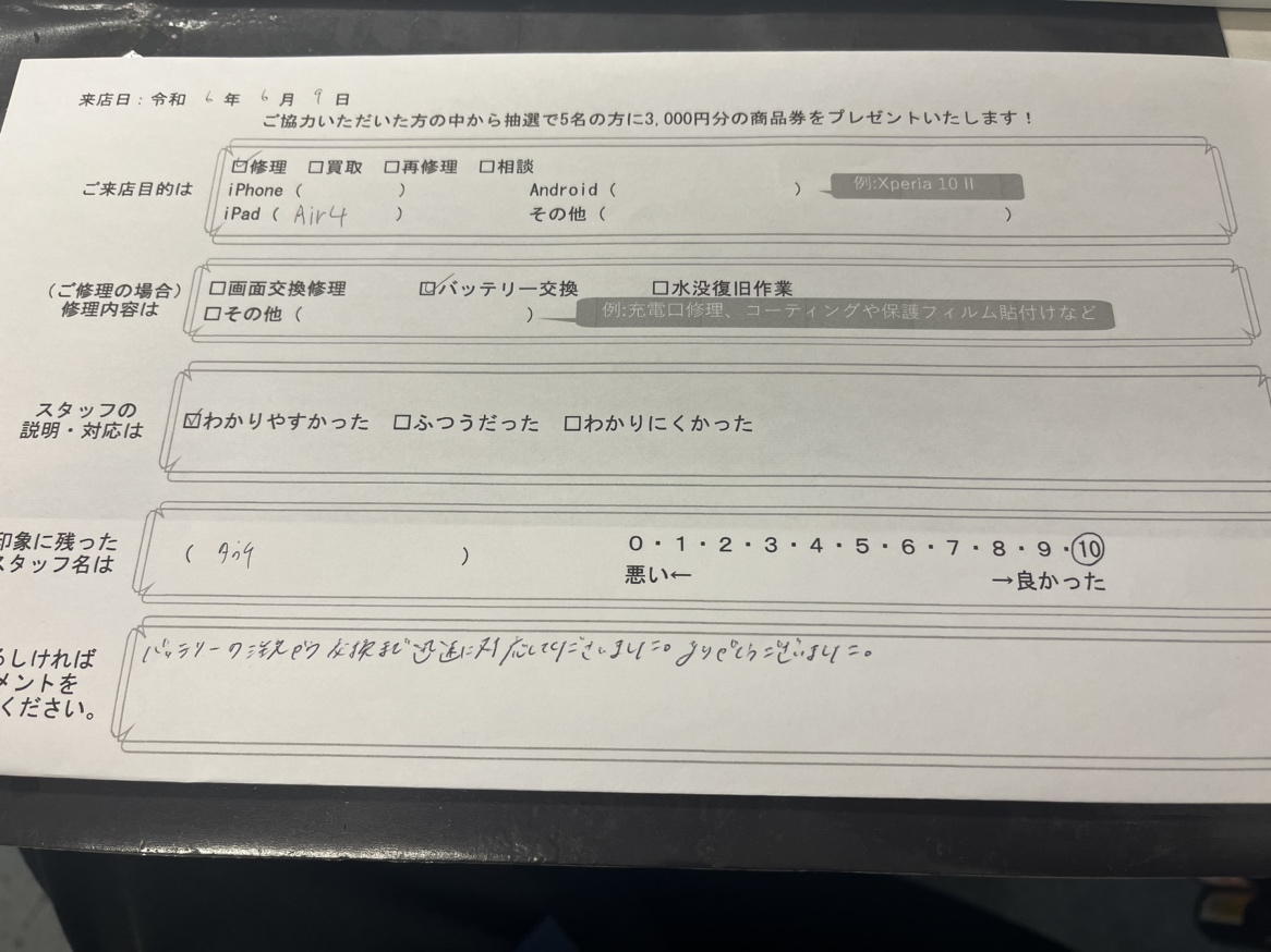 スマホスピタル京都駅前 iPad Air(第4世代)のバッテリー交換!