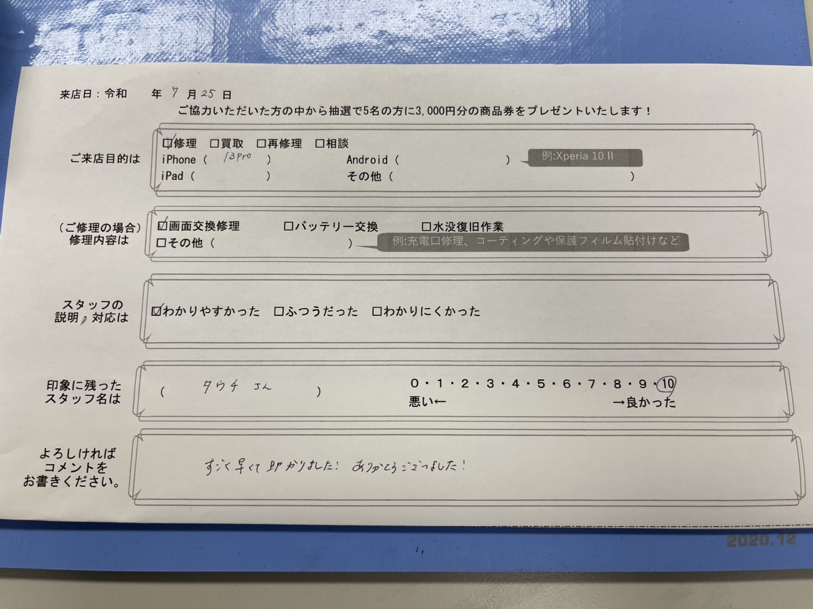 すごく早くて助かりました。