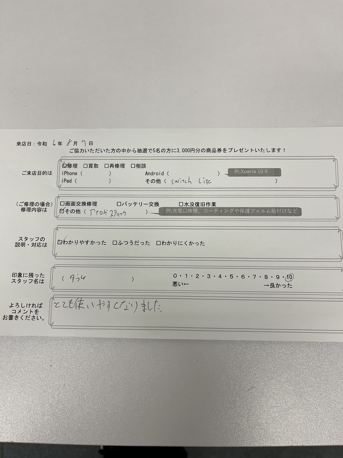 スマホスピタル京都駅前 Nintendo switchliteのアナログスティック修理!