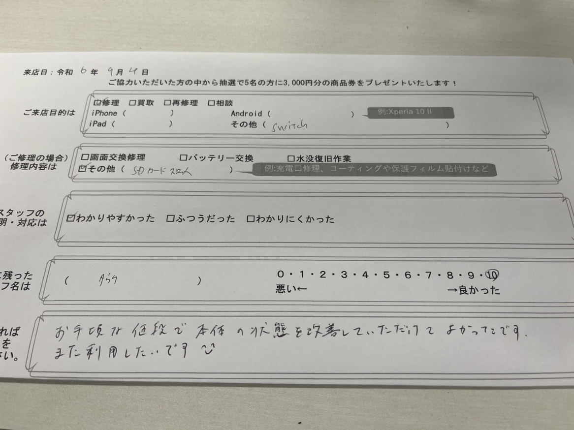 スマホスピタル京都駅前 NintendoSwitchのSDカードスロット修理!