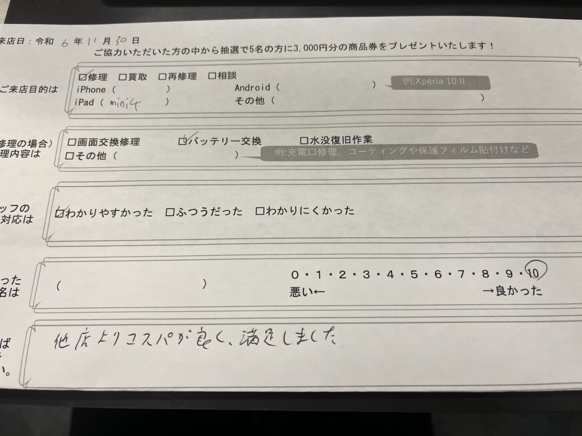 スマホスピタル京都駅前 iPad mini (第4世代)のバッテリー交換!