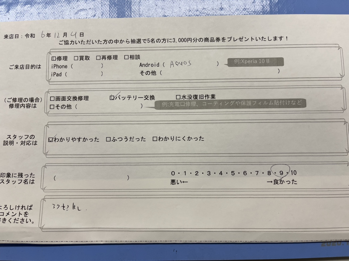 スマホスピタル京都駅前 AQUOS sense6のバッテリー交換!