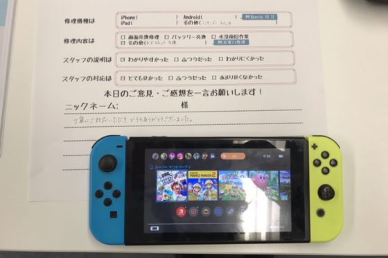 【お客様の声】Nintendo Switch 液晶画面交換修理