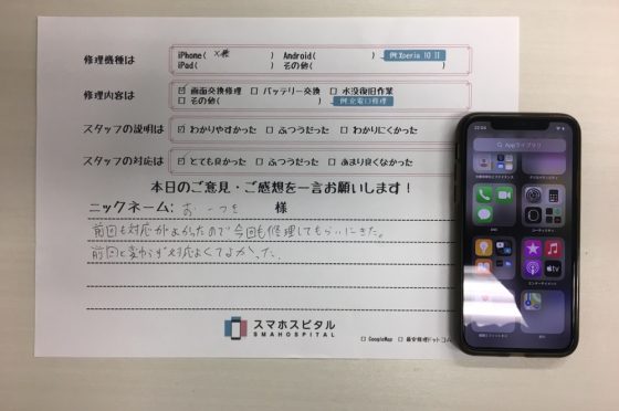 2回目のご来店、iPhoneXの画面交換修理