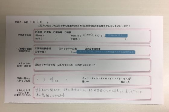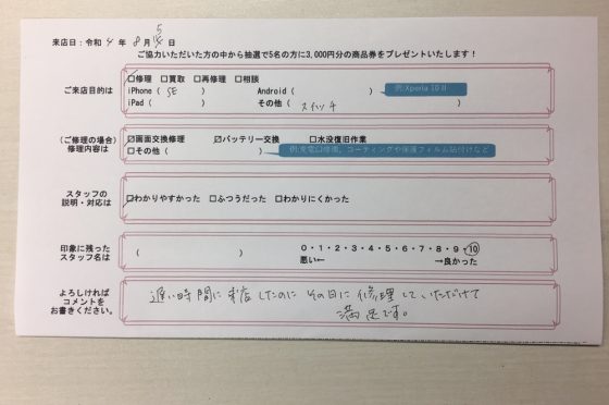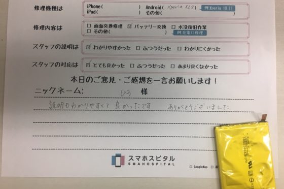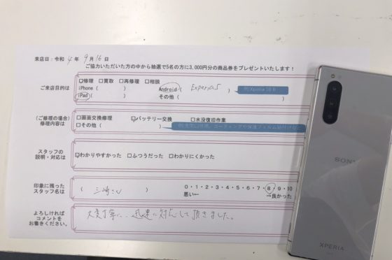 iPadの修理後にXperia5のバッテリー交換修理も行いました。