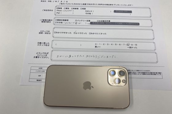 3回目のご来店 iPhone11Pro画面修理&ブルーライトコーテング
