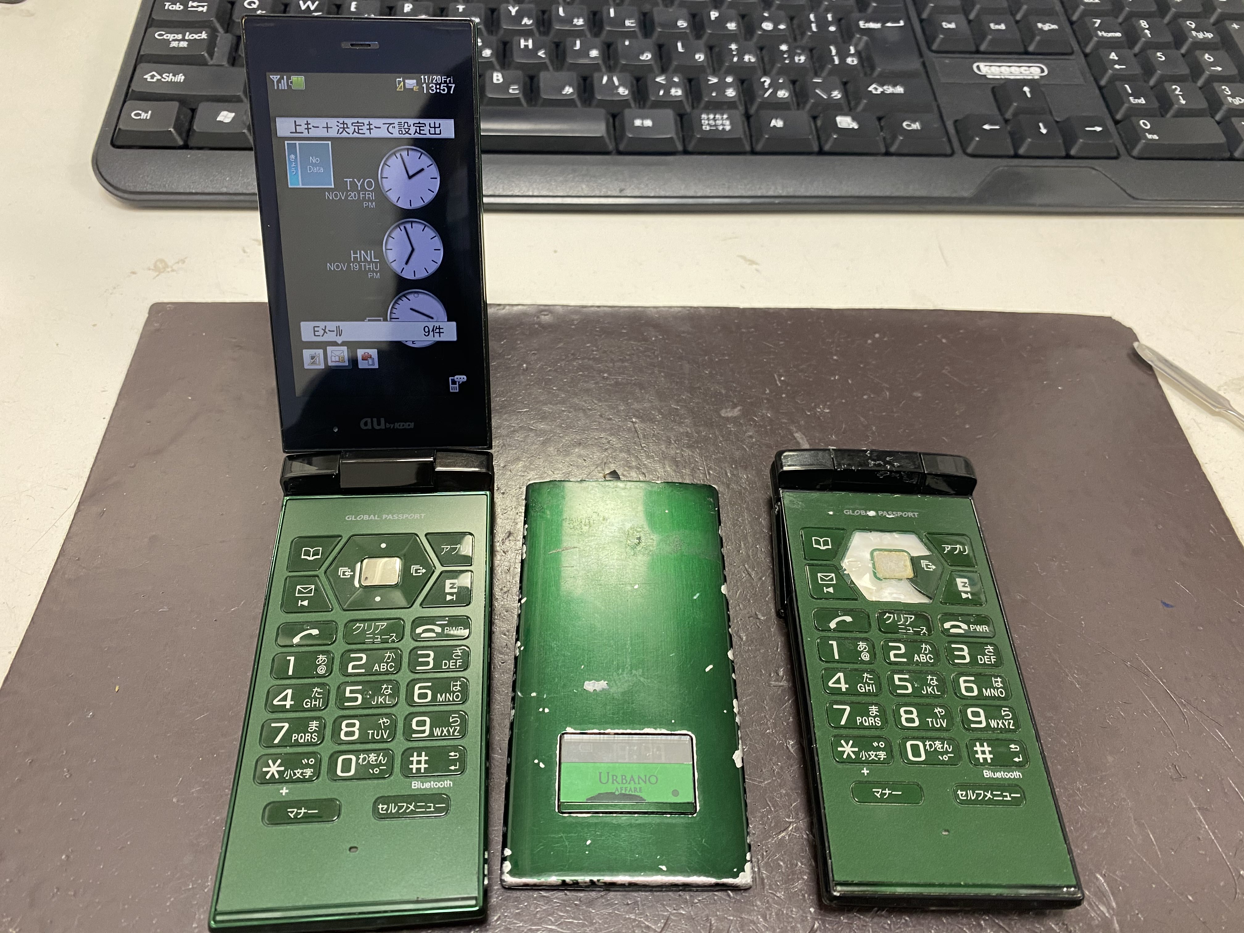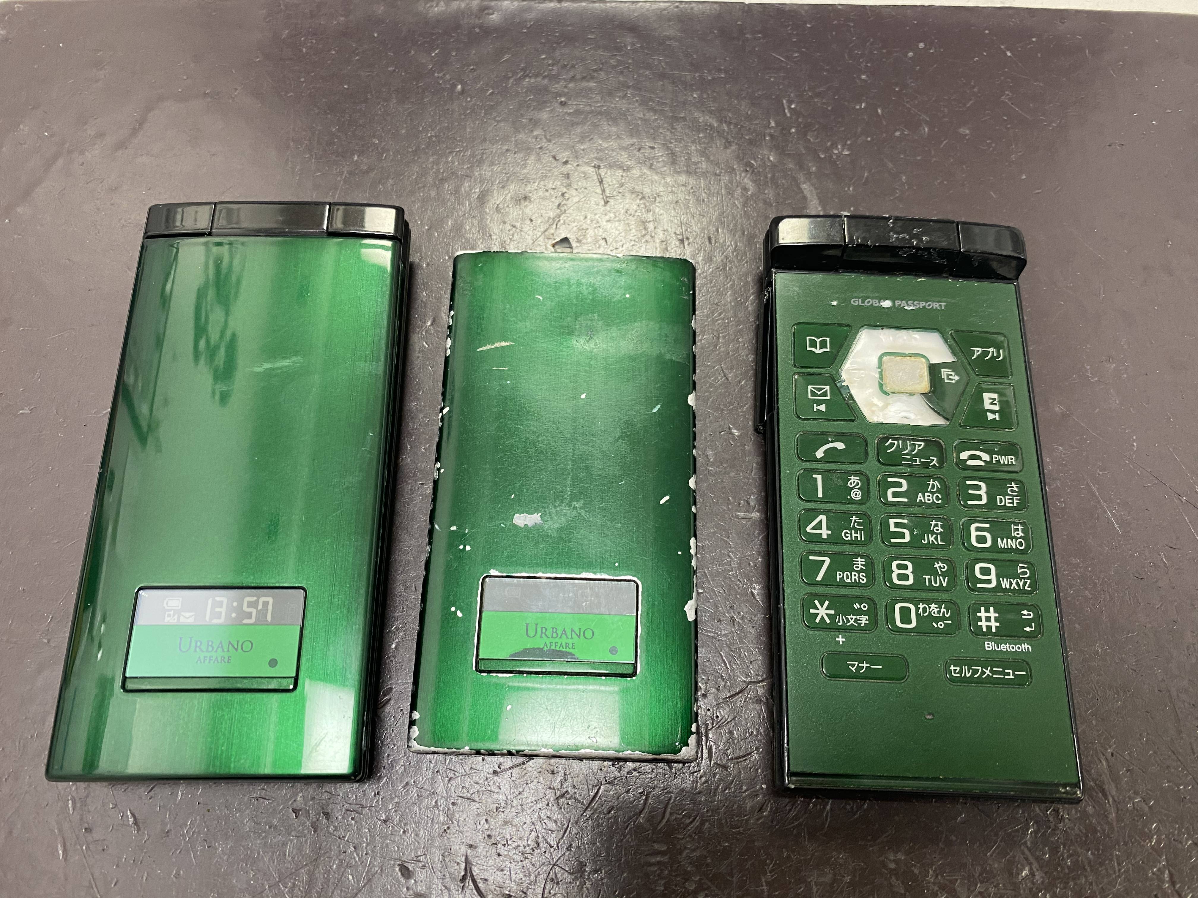 ↓左が用意したちゃんと使える本体、右が分裂してしまったお客様のガラケーです。これを修理することで…