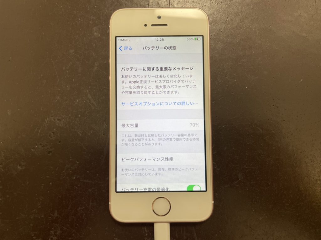 iPhoneSEの最大容量が70%にまで減ってしまったバッテリーの交換修理をさせていただきました!