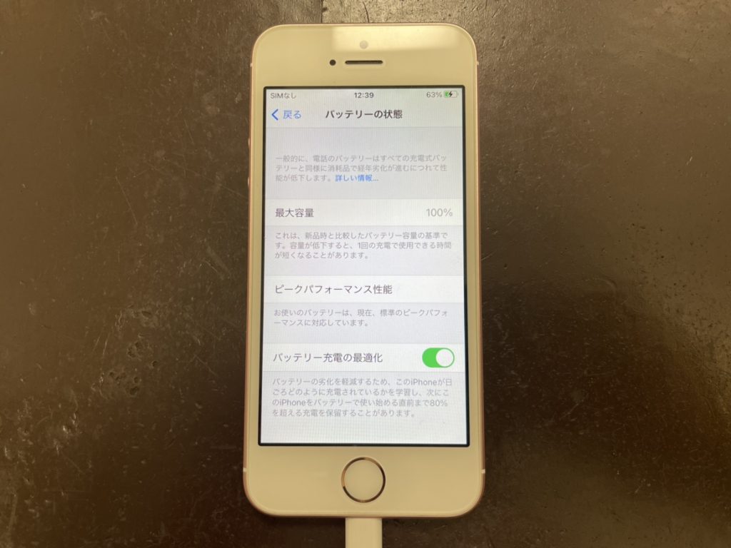 そしてその後、新しいバッテリーに交換を終えたiPhoneSEがこちらでございます!