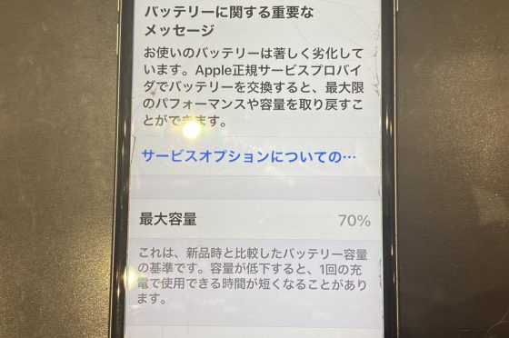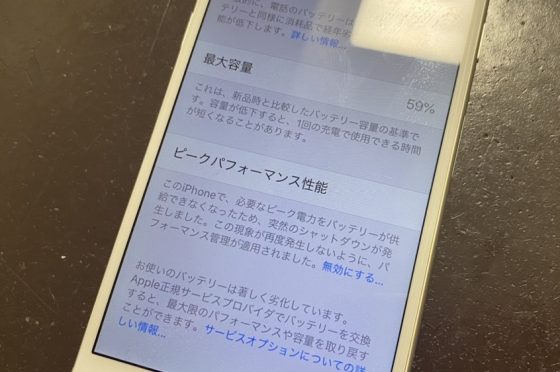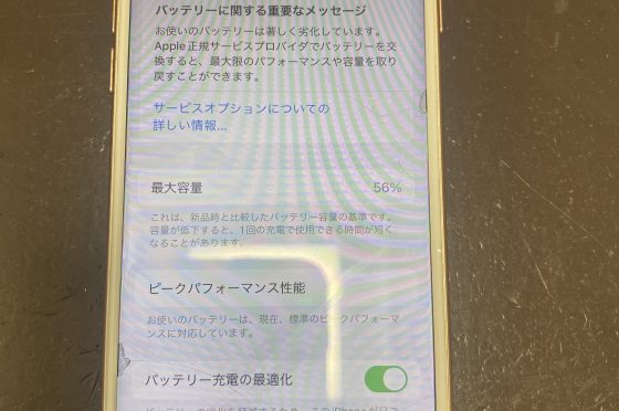 バッテリーの最大容量が56%のiPhoneも即日バッテリー交換できます!