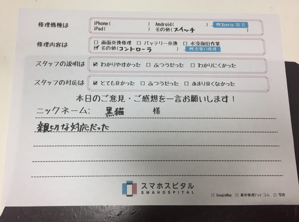 スマホスピタル京都河原町 【NintendoSwitchのJoy-Con修理】親切な対応だったとお声を頂きました!