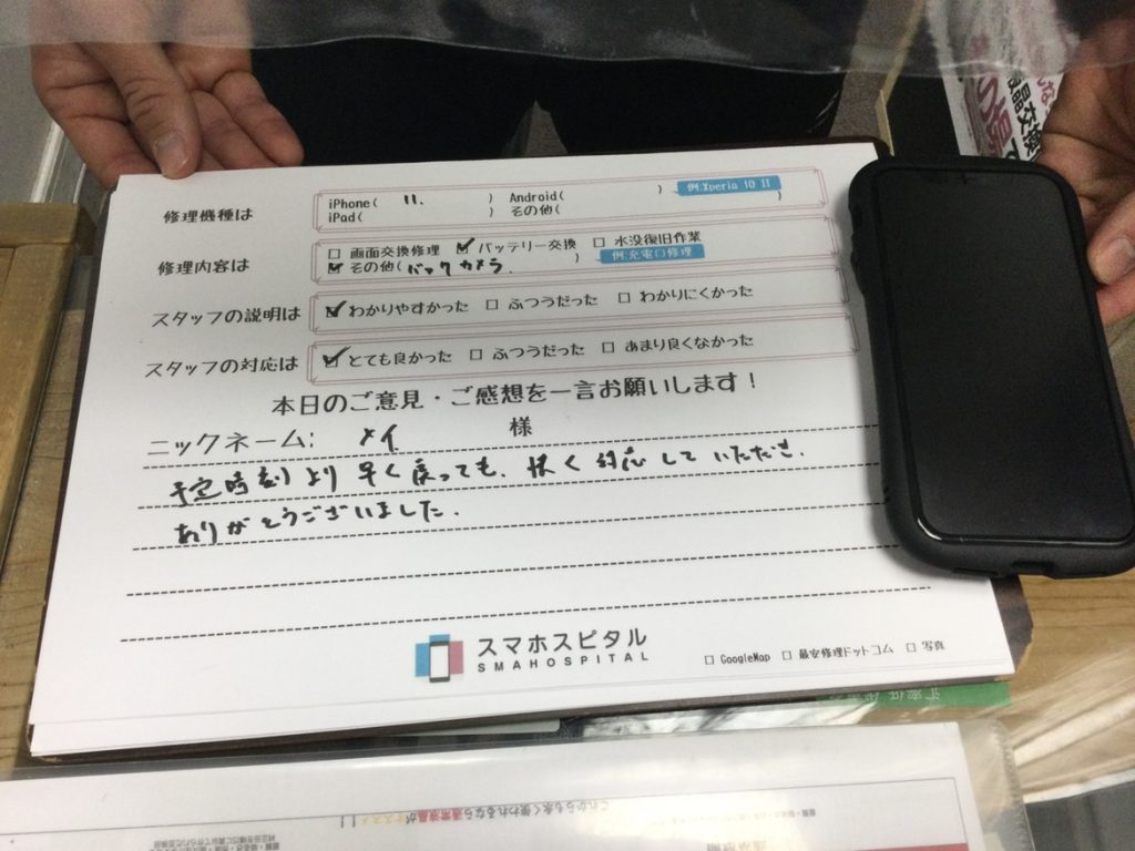 スマホスピタル京都河原町 予定時間より早く戻っても快く対応していただき、ありがとうございました。