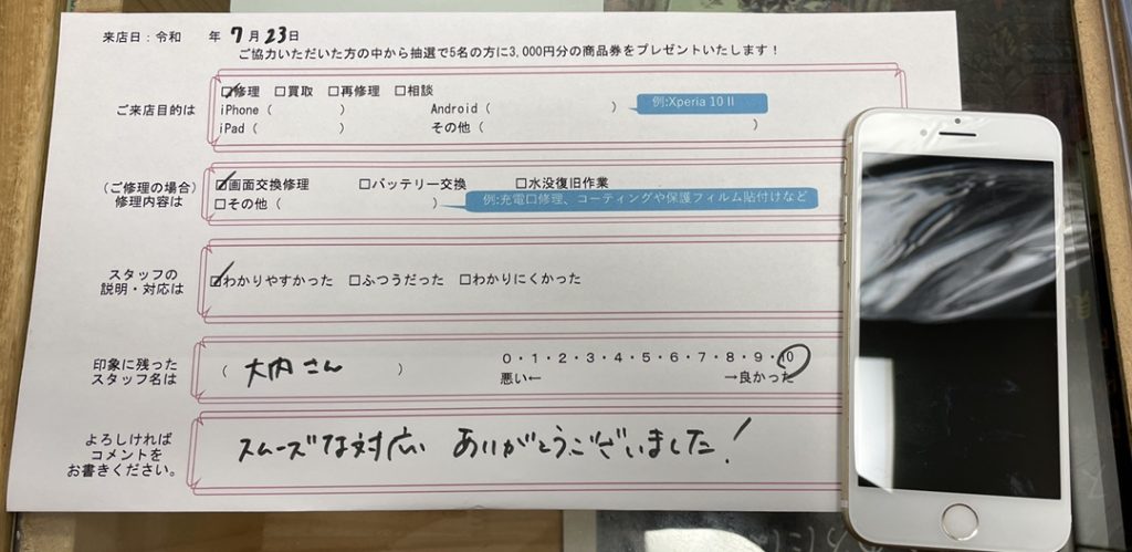 スマホスピタル京都河原町 スムーズな対応 ありがとうございました!