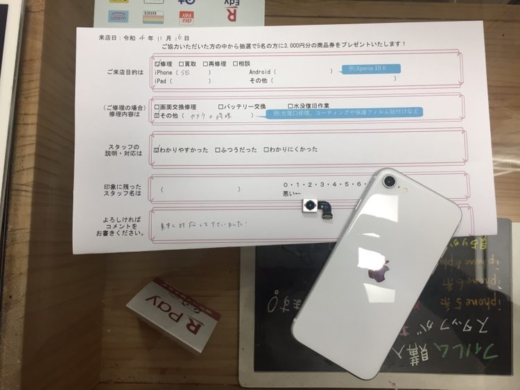 スマホスピタル京都河原町 11/16 iPhoneSE2のバックカメラ交換修理