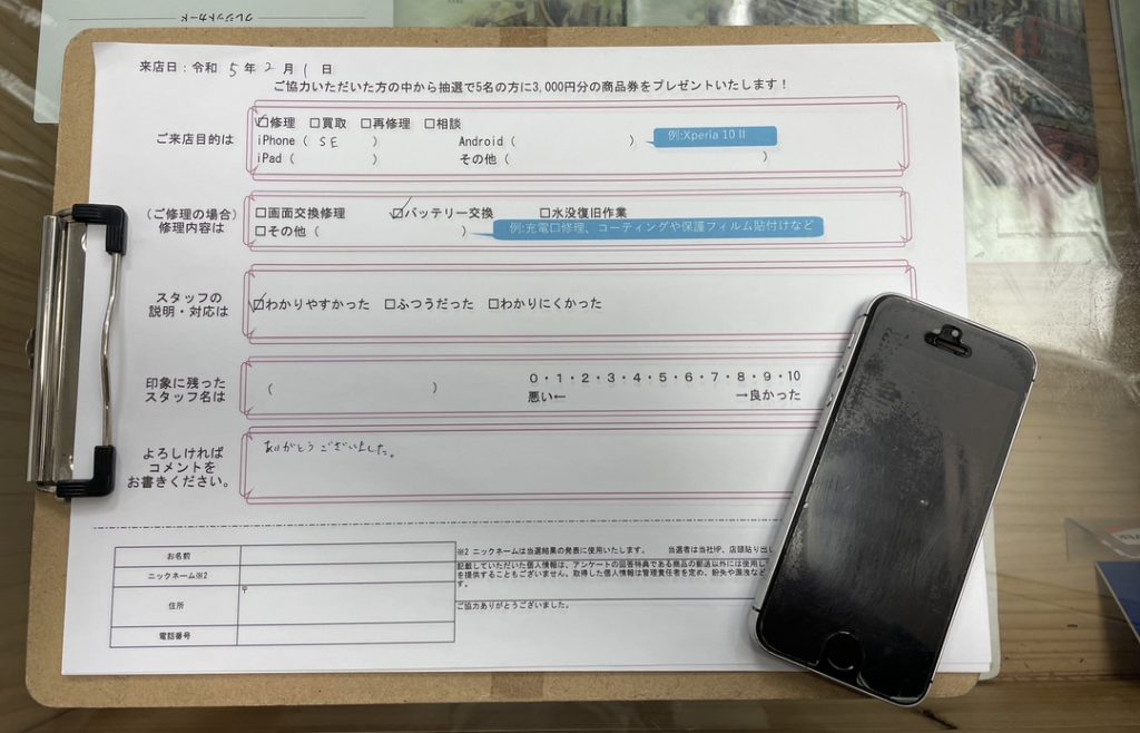 スマホスピタル京都河原町 2023/2/1 iPhoneSEバッテリー交換