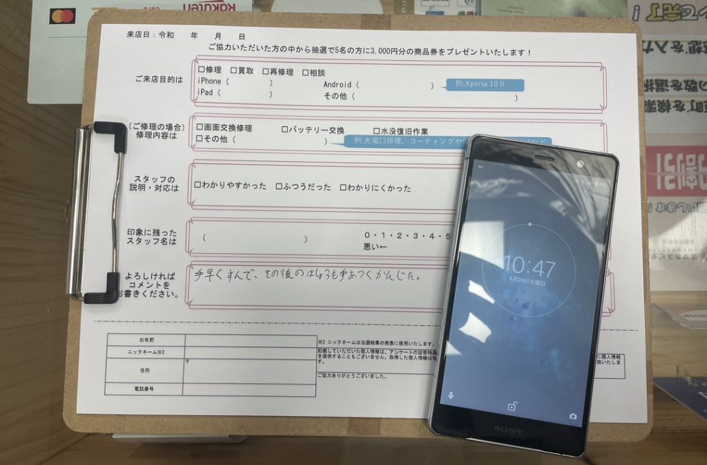 スマホスピタル京都河原町 Xperia XZ2 Premiumの画面とバッテリーの交換をしました!