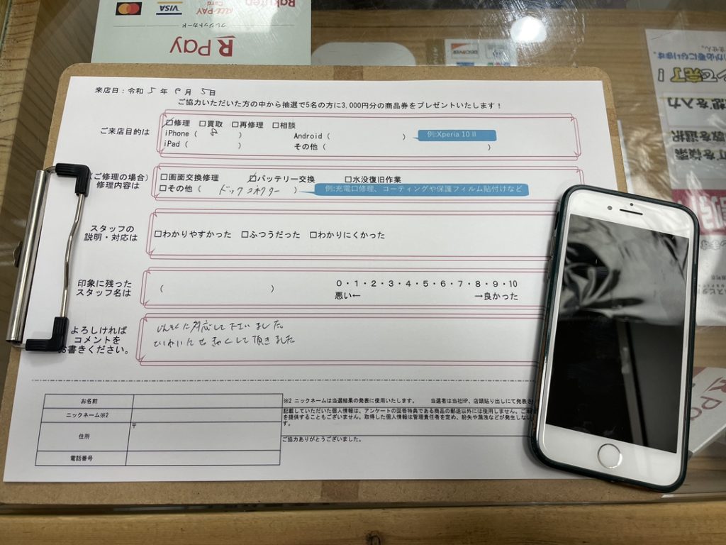 スマホスピタル京都河原町 iPhone8のバッテリーと充電口の修理をしました!