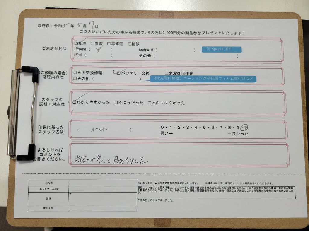スマホスピタル京都河原町 2023/8/7 iPhone8のバッテリー交換のご依頼を頂きました!