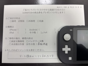 スマホスピタル京都河原町 【お客様の声】SwitchLiteの基板修理でデータ復旧に成功しました!