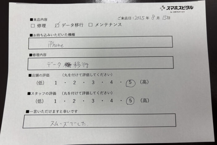 iPhone12の水没復旧修理をしてもらい、データを取り出すことができました!ありがとうございました!