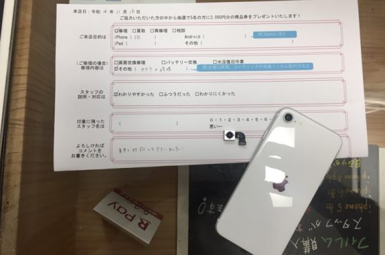 11/16 iPhoneSE2のバックカメラ交換修理