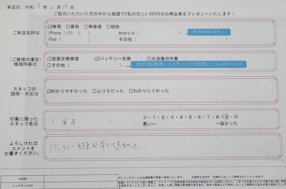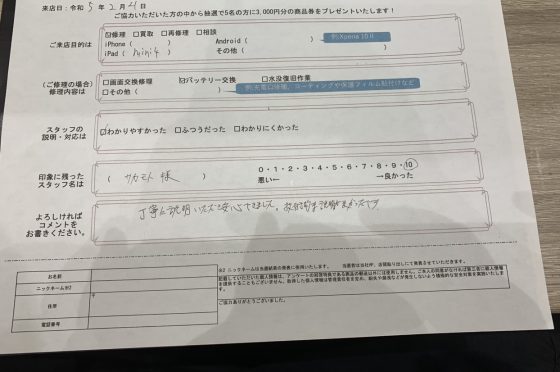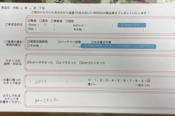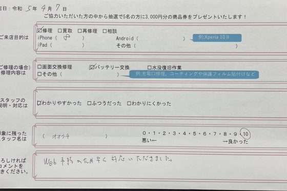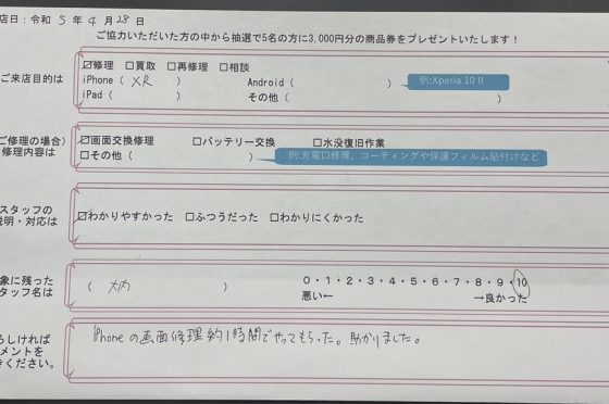弊社の修理サービスをご利用いただいきましたお客様の声です。