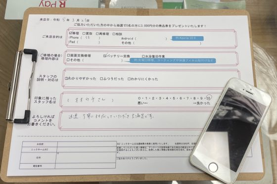 【お客様の声】iPhoneSE2のバッテリーを交換させていただきました!