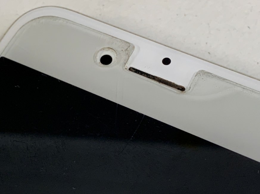 イヤースピーカーの音が出るべき穴が汚れで完全に塞がってしまっています。